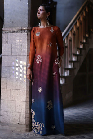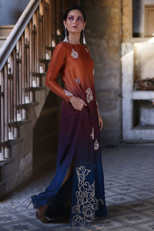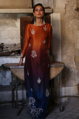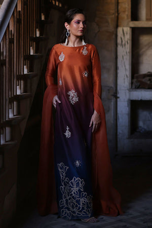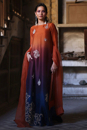 Introducing stunning Kaftan and Dupatta set, designed to make you stand out in the crowd. The Kaftan is made from pure raw silk, and comes in a beautiful fire blue shade that is perfect for any occasion. The intricate work of resham beads, mirrors, sequence, and pearls make it a true work of art. To complete the outfit, paired the Kaftan with a pure organza Dupatta.