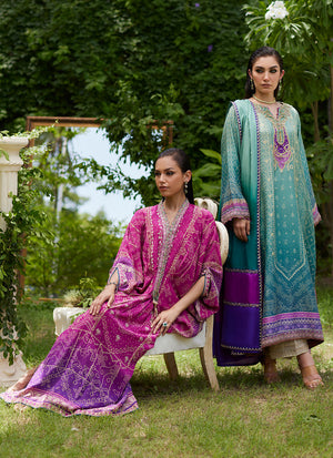 Leisha Teal Ombre Shirt And Dupatta - Mayna Festive Prints'24 by Farah Talib Aziz