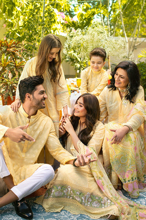 Soft self sorbet lemon chikan embroidered kurta on cotton with white bareeze cotton straight pants.The shipping charges for all articles barring Bridals are as follows: