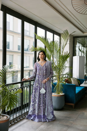 A visual treat, net gown with heavy silver embellishment of Swarovski crystals, tilla, resham and pearls. Paired with raw silk lehenga and embroidered dupatta.