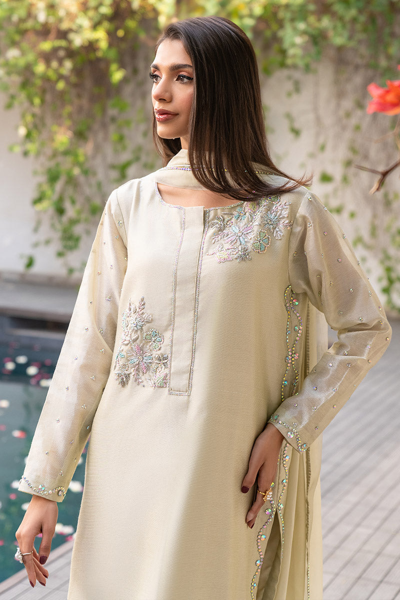 Drenched in the brilliance of lime yellow, Aurora is a celebration of heritage craftsmanship with a modern touch. The Zari Khadi shirt shimmers with a rich texture, perfectly complemented by pure sheesha silk straight pants and a medium silk dupatta adorned with delicate organza borders and sparkling stone details. With a shirt length of 52 inches and standard pant length, this silhouette is effortlessly elegant. Whether you’re attending an intimate gathering or a grand festivity, Aurora promises to make a statement with its luminous charm and exquisite craftsmanship.