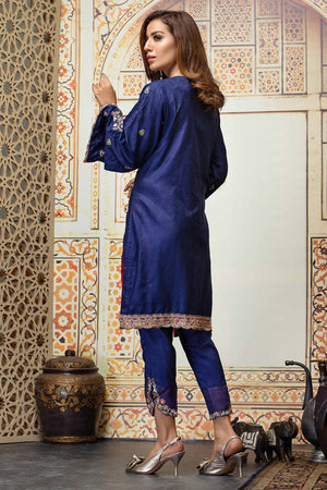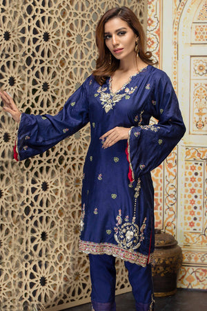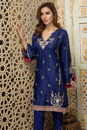 Dark blue self jamawar with kashimri style hand workColor: Dark Blue