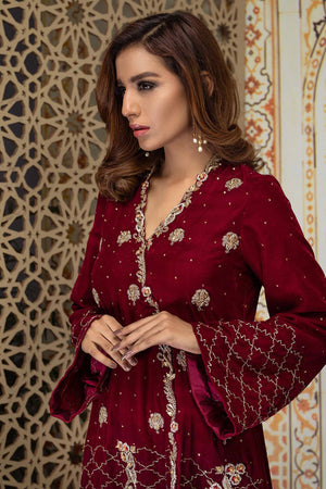 Mahroon overlap velvet shirt with front and back embellishmentColor: Maroon