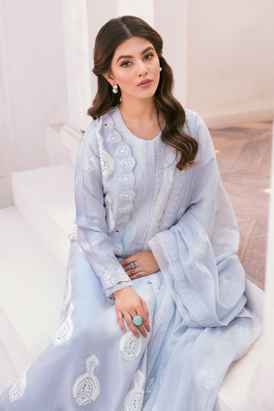 Be the epitome of elegance with our powder blue silk shirt and cotton net dupatta with block print and mirror work.