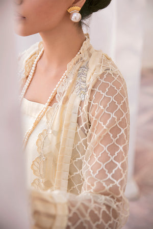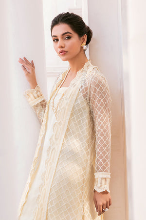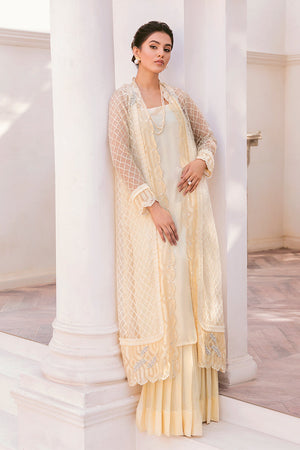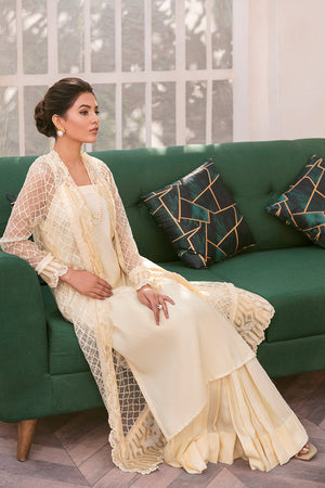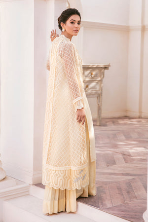 The stunning shades of yellow front open coat design. It has intricate silk thread embroidery in front and daman. This dress comes with pleated pants.
