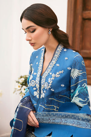Dark Blue Pure Crepe long Digital Paint shirt. It has beautiful hand embroidry on neckline