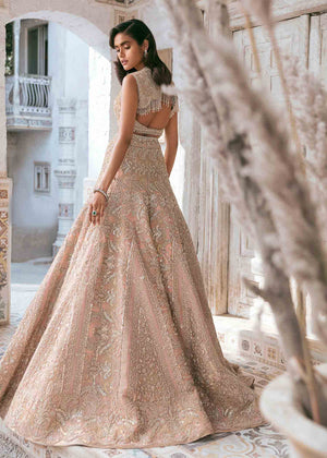 Description: This contemporary yet modern bridal is an amalgamation of east meets west, it has delicate embellishments of zardozi and swaroski all over with a hint of uncut pearls all over. The silhouette esencuates the body curves and and a grandeur of the personality