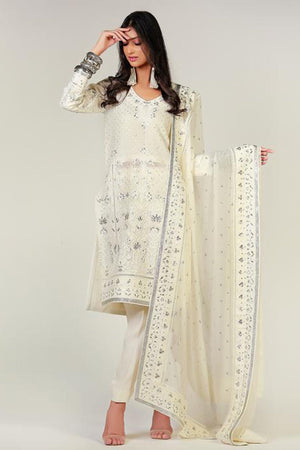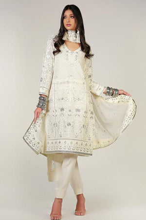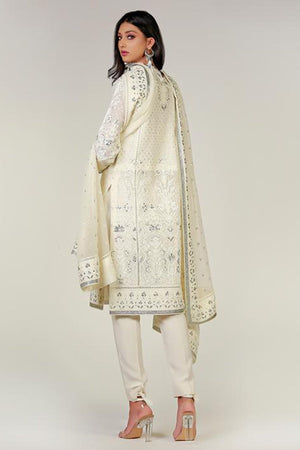 WHITE DORI HAND EMBROIDERED KALI KURTA - Rizwan Beyg