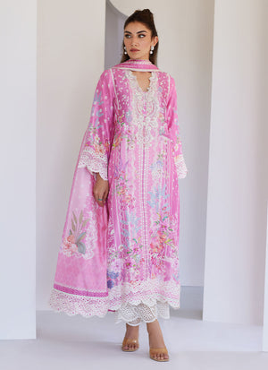 This elegant shirt is paired with a digitally printed, pure medium silk dupatta,trimmed with embroidered lace.