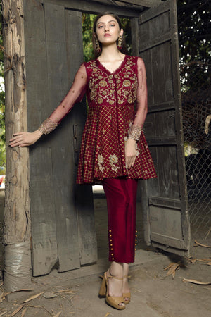 Zardozi Maroon Peplum - Mahum Asad