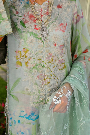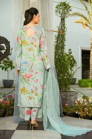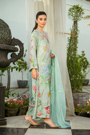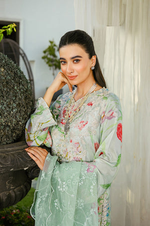 Introducing our ethereal Light Green co-ord from our Eid Festive Collection Crafted from printed rawsilk fabric, this captivating ensemble showcases delicate embroidery and scalloped edges on the shirt chalk and daman. Adorned with pearls and crystal corns embellishment, with tassels hanging gracefully. Complete the look with our an intricately embroidered organza dupatta,adding a touch of elegance to your Eid celebrations.