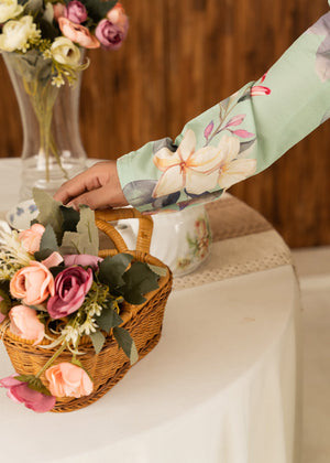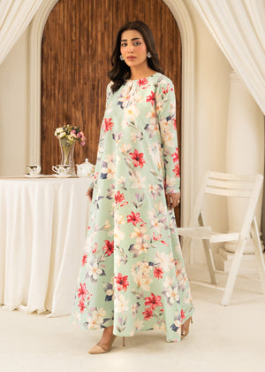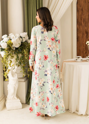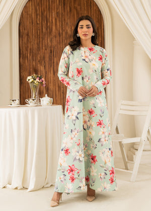 This pastel blue dress made in lawn silk fabric in floral print, featuring boat neck and full sleeves in a subtle floral print. It is a perfect addition to your summer wardrobe.