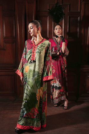 "Magenta Oriental" is an exquisite kaftan that combines bold animal print with intricate scalloping details along the hem, creating a striking yet sophisticated look. The hand-embellished motif adds a touch of artistry, while the fluid silhouette flatters the figure with modern elegance. This luxurious piece is the ultimate choice for any special occasion or festive celebration, offering a perfect blend of contemporary style and timeless allure.