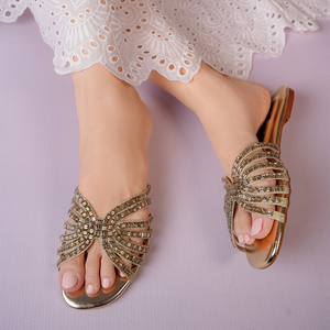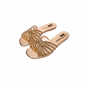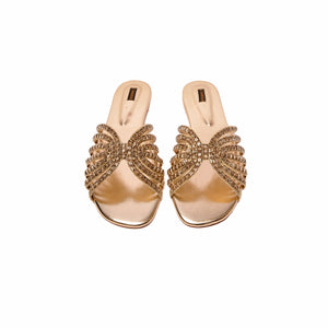 The ‘Magnafique' Flat features a classic cage pattern, adorned with glistening gemstones & crystals. Crafted in gorgeous metallic leather with an iridiscent sheen, this striking pair promises to be Flats - revamped your go-to event-worthy piece.