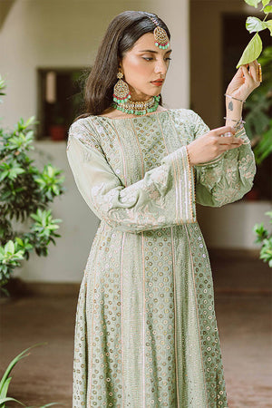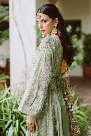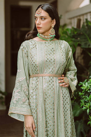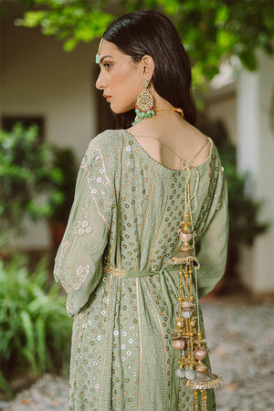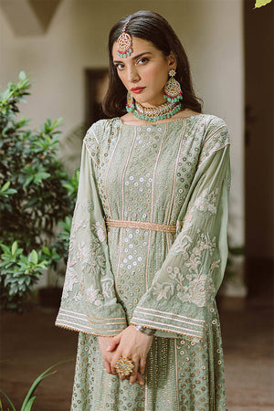 A mint chikankari phirann sports a tasteful spray of mukesh. The sleeves are hand-rendered with resham and finished with a gota belt to accentuate the waist. We have paired it with silk gotta chooridar.The shipping charges for all articles barring Bridals are as follows:
