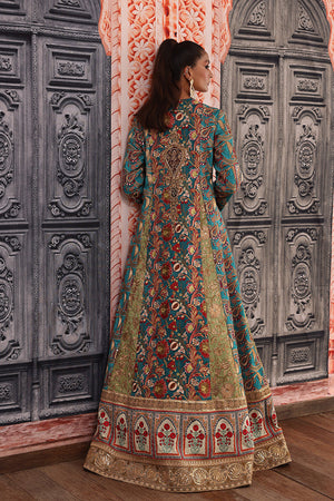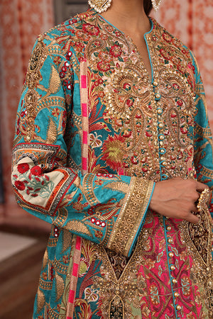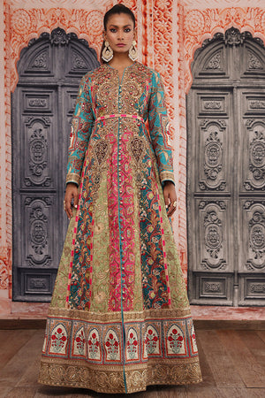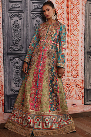 Ethnic floor length flowy outfit beautiful rich color blocking each panel is handcrafted with resham and tila thread embroidery enhanced with sequins beautiful heavy galla created with resham thread and zardozi work beautifully created motifs on the panels are made with zardozi and applique work. Finished with handcrafted resham thread, tila thread and sequins borders. You can order through website or call or have an appointment with Shamaeel to customize colors of your choice.The shipping charges for all articles barring Bridals are as follows: