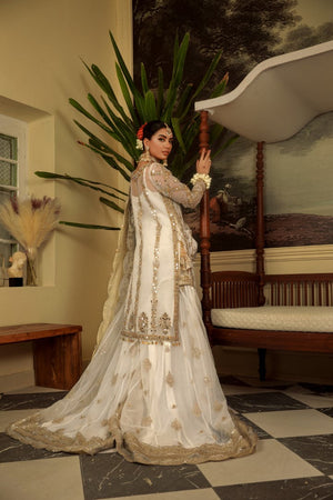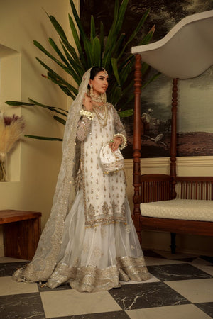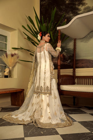 This stunning tradition outfit is perfect for your occasion. It’s is elaborated by farshi Sharara with heavily embellished borders paired with embroidered embellished duppatta to complete the look.