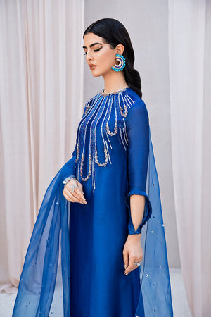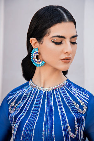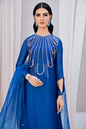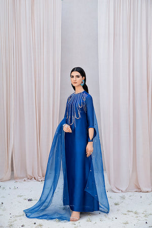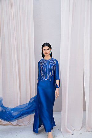 Details: Long Tissue Silk Kaftaan Shirt In Royal Cobalt Blue With Finely Hand