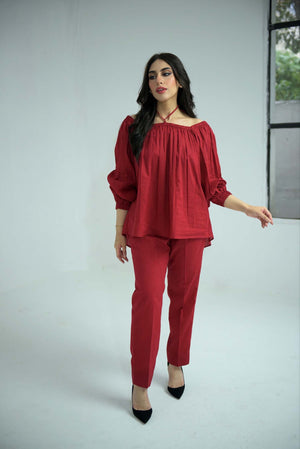 Make a statement this summer with our Maroon Bloom Co-ord Set, crafted on a lightweight lawn canvas. The maroon hue adds a touch of sophistication to this set, while the stylish neckline and straight pants create a look that's both chic and comfortable. Perfect for a day out or a night in, this set is a must-have for any fashion-forward wardrobe.