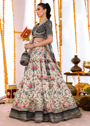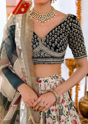 The lehenga choli is a stunning showcase of exquisite craftsmanship. The luxurious velvet choli offers an unparalleled experience with its impeccable stitching, perfectly complemented by a digitally printed lehenga that flows with elegance. This captivating look is finished with two dupattas, elevating the feminine allure of the design to a whole new level.