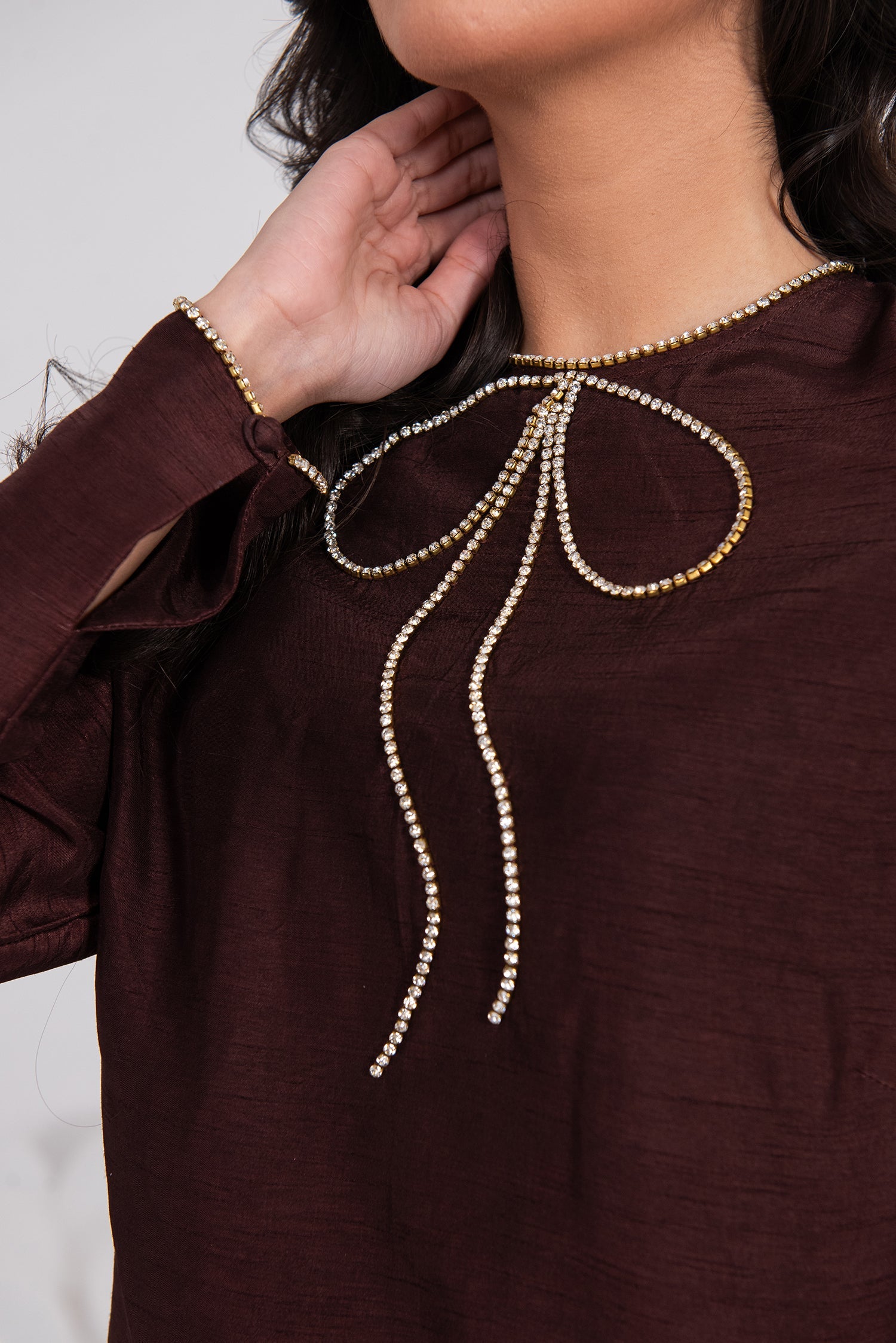 Introducing "Matilda," a dress that epitomizes elegance with a touch of Swarovski sophistication. This enchanting garment features exquisite neck detailing adorned with the brilliance of Swarovski crystals, creating a captivating focal point that defines opulence.