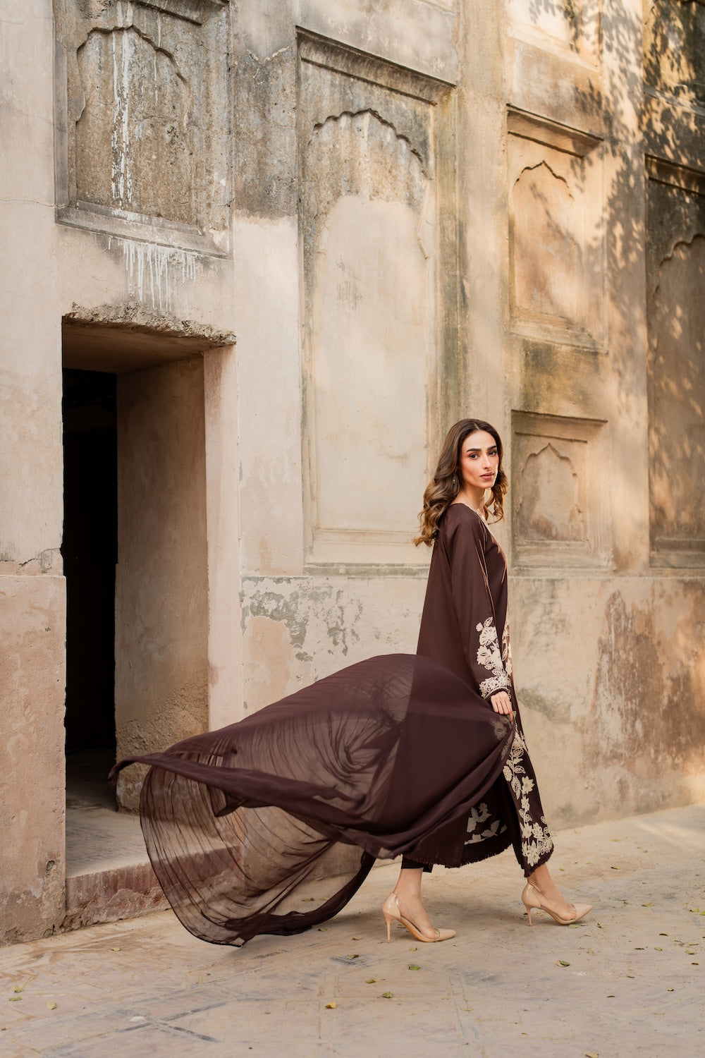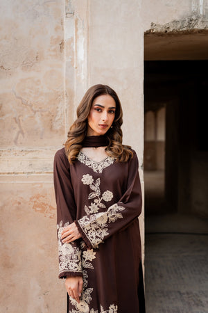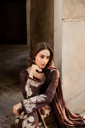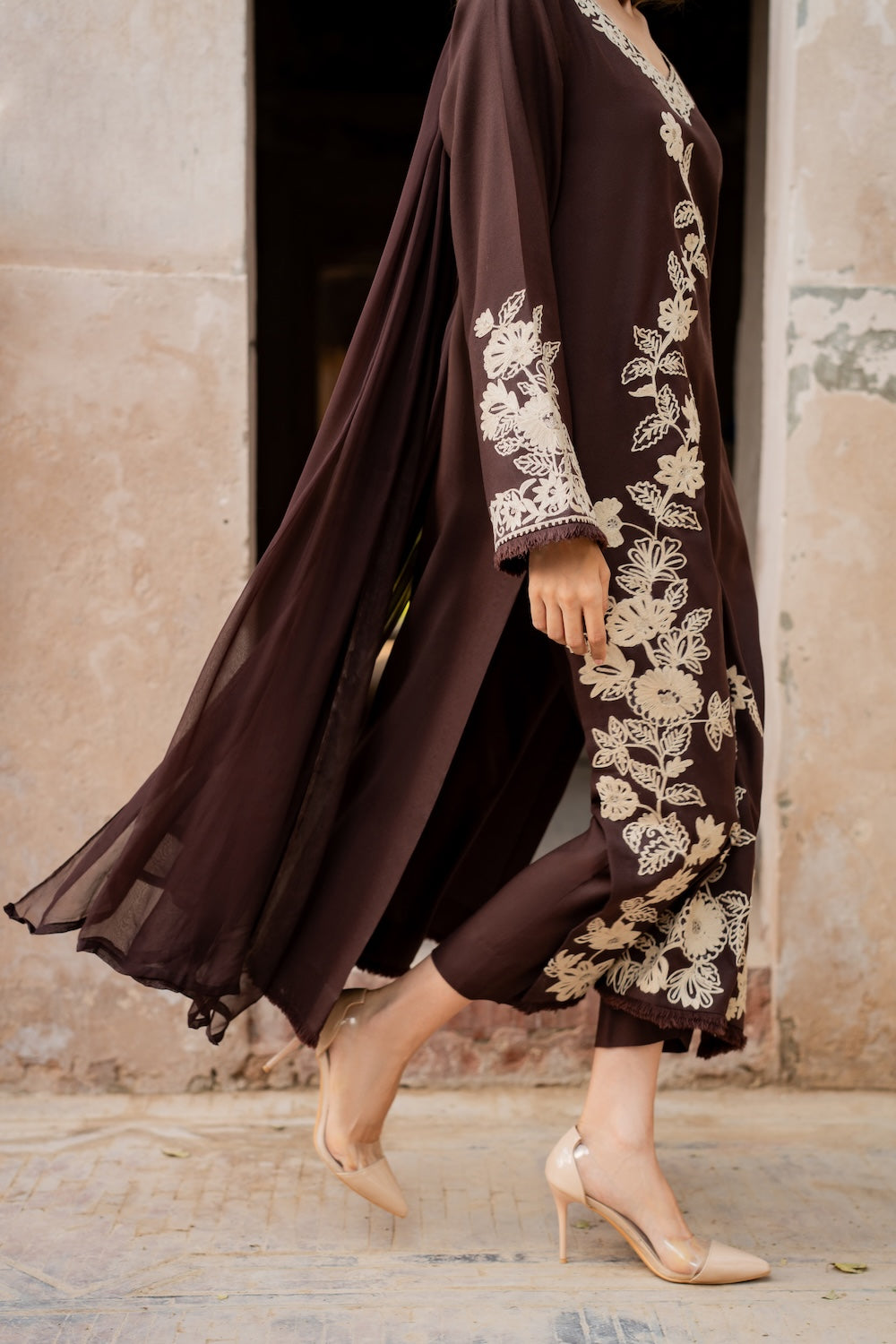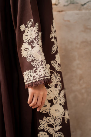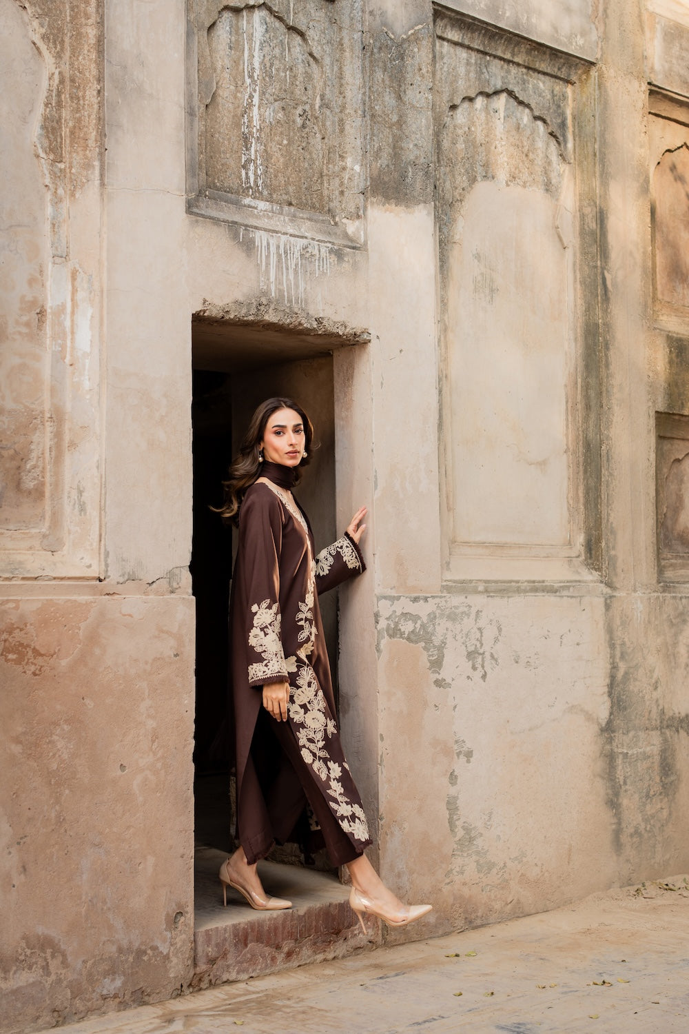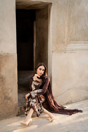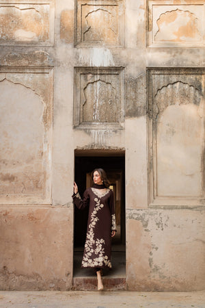 Warm marina in a rich brown palette - the floral motifs bloom across the front and sleeves, while the Aari embroidery adds texture and depth. This piece isn’t just seasonal; it’s a timeless staple that elevates any winter‑wardrobe lineup.
