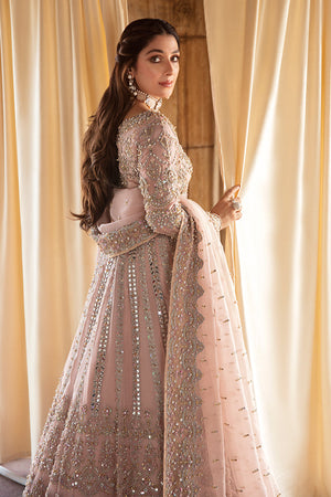An elegant rhyme to tradition, Mehr e Ishq is a lehnga choli creating aesthetical magic with its eye catching hues of pink and delicate motifs. The organza outfit is heavily embroided and hand embellished with crystals, sitara, sequin and mirrors. The perfect opulent outfit is paired with an organza dupatta is adorned with four sided border of embellishments.