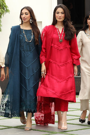 Be bold and stylish in this TEAL raw silk outfit. Solid embroidered and pleating details enhance the beauty of this fit. This classy set is great addition to your wardrobe.The shipping charges for all articles barring Bridals are as follows:
