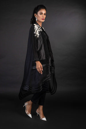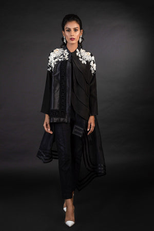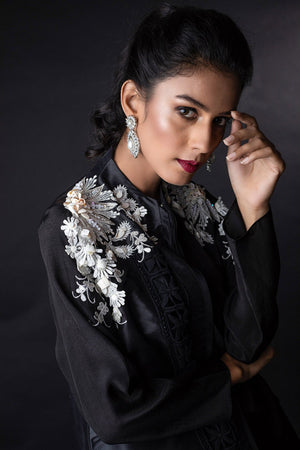 Aasymetric layered silk anbd organza jacket with an oyster motive.Fabric: Silk & Organza
