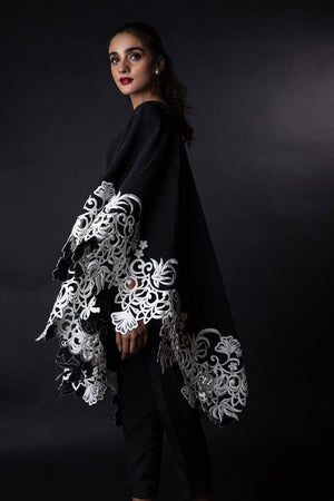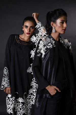 Cutwork one sided poncho.Organza cutwork tunic.Color: Black