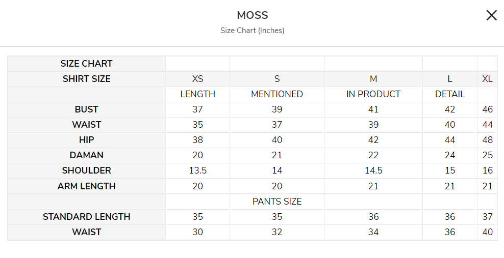 - Standard Shirt Length: 40’’