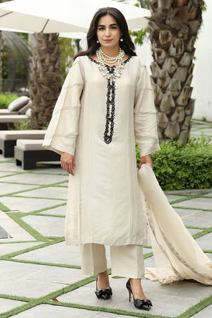 This summer we bring an elegant ivory outfit with colorful embroidery. Raw silk shirt and trouser finished with chatta patti. Makes you fully stand out from the crowd. The outfit can be paired with organza dupatta with colorful floral embroidery and chic trouser.The shipping charges for all articles barring Bridals are as follows: