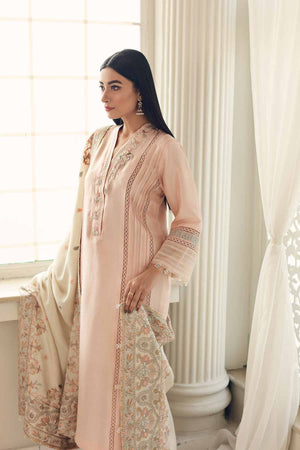 Detailed hand embroidered shawl and kurta with brass hangings.Collection: Deeves