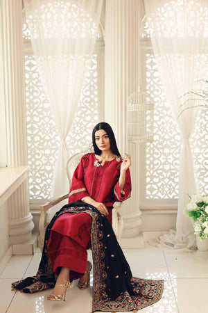Color: Black Shawl with Deep Red Kurta
