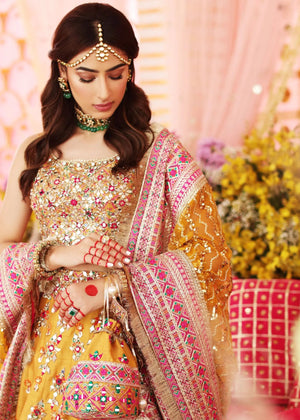A stunning outfit with a combination of block print and handcrafted mirror details enhanced with multi-colour embroidery. It is paired with lovely net hand crafted dupatta with gold sitara and spell-binding border around it.The shipping charges for all articles barring Bridals are as follows: