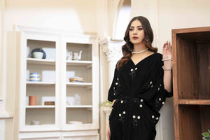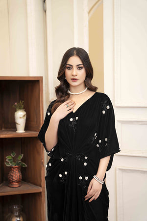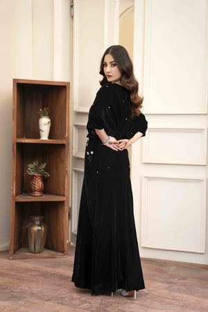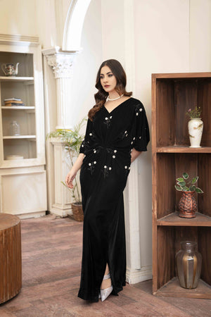 Radiance personified, Nora is designed in a classic black velvet which accentuates the exquisite embroidery with pearls, cut dana and redefined embellishments.