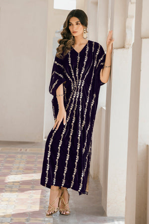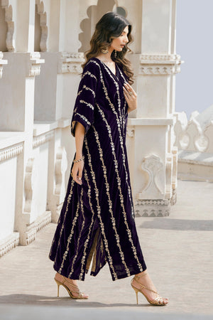 Nova Purple is a beautiful kaftaan crafted with full tilla-embroidery, giving it a rich, luxurious look. The intricate embroidery adds texture and depth to the garment. Perfect for special occasions, Nova Purple will make a stunning statement.