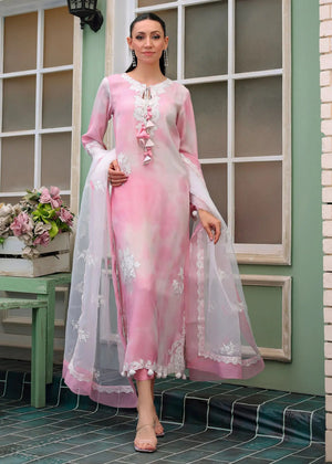 Description: A stunning ensemble that showcases a captivating blend of pink hues, enriched with beautiful and intricate appliqué embroidery. This exquisite design is perfectly complemented by a white embroidered dupatta, elevating the entire look to a new level of elegance and sophistication.