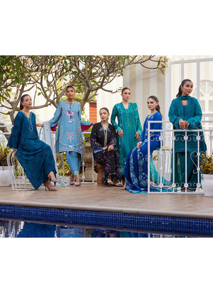 Statement-making elegance, with the ultimate it-girl details!! This blue, raw silk shirt is beautifully embroidered and accented with contrasting trimmings for a bold, refined touch. Delicate heart shaped, sequin hangings add movement and shimmer, bringing a playful edge to its classic silhouette. The look is tied together with an ethereal organza dupatta, embroidered throughout with cute little hearts and finished with rich raw silk borders—effortlessly elevating your style from expected to unforgettable. Paired with a coordinating raw silk shalwar, intricately embroidered to mirror the shirt’s detail, this ensemble strikes the perfect balance between timeless craftsmanship and contemporary flair.