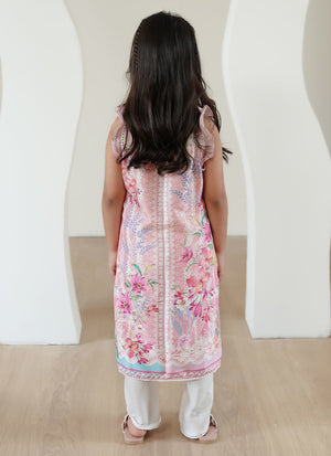 Delicate and refined, this chai pink raw silk kurta is a graceful expression of youthful elegance. The soft, muted hue is beautifully enhanced by a subtle floral print, creating a serene and timeless aesthetic. Crafted from luxurious raw silk with a gentle sheen and smooth texture, the kurta offers both sophistication and comfort. Ideal for festive celebrations or intimate family gatherings, this piece effortlessly marries traditional artistry with a modern sensibility—perfect for the young girl with a love for understated beauty and refined style.