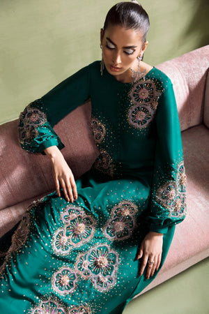 Olivia is versatile and perfect for a range of occasions. The dress is hand embellished with crystals and French sequins, adding a touch of sparkle and shine to the already stunning design. The chunky floral patterns are intricately woven into the fabric, creating a sense of texture and depth. The embellishments are meticulously placed, with each crystal and sequin carefully sewn by hand. The effect is a truly one-of-a-kind piece that is both stunning and unique.