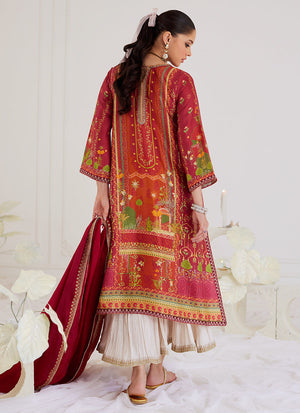The pure medium silk dupatta is a coordinating red with printed and embroidered borders, to create a lasting impact.