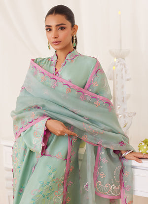 Petra Fern Green Embroidered Shirt And Dupatta - Lea Fall '24 by FTA