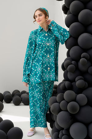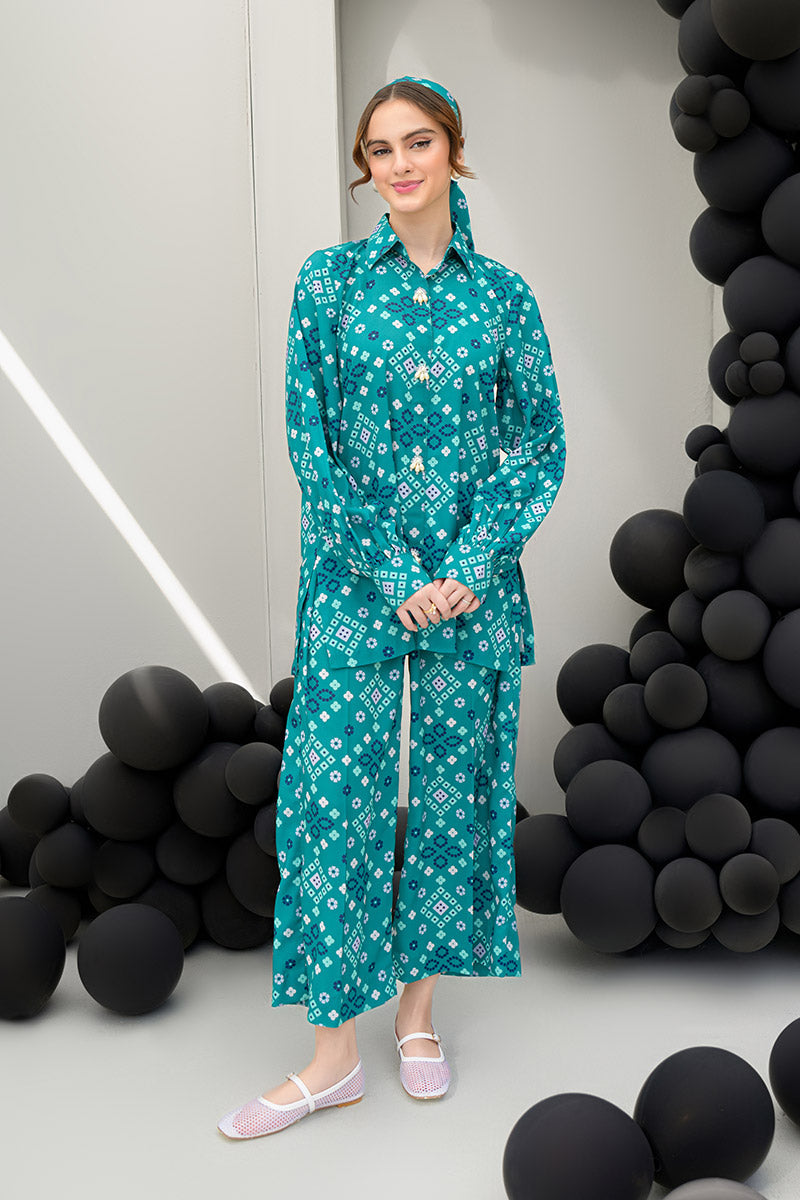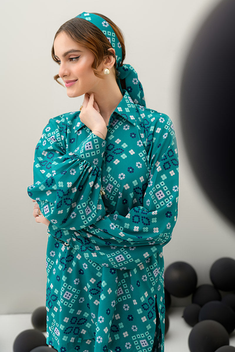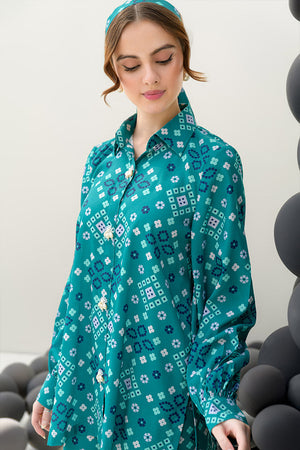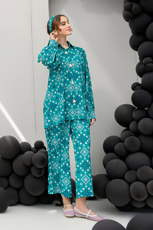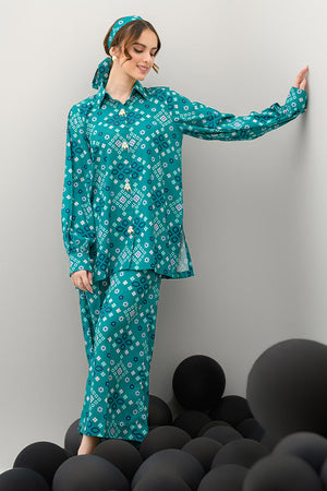 Introducing the Pine Whisper co-ord set, designed to channel nature’s tranquility. This stunning ensemble features a short buttoned shirt in a rich dark green hue, elevated with delicate pearl details at the front, adding a subtle touch of elegance. Paired with culotte pants, the set offers a modern, relaxed silhouette that is both chic and comfortable. The shirt measures 29 inches in length, while the culotte pants are 37 inches long, ensuring a flattering fit. Crafted from soft crepe fabric, the Pine Whisper set is perfect for casual outings, office wear, or weekend gatherings, providing effortless style with an air of sophistication.