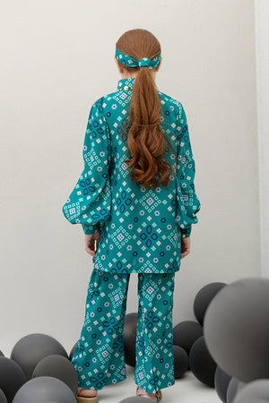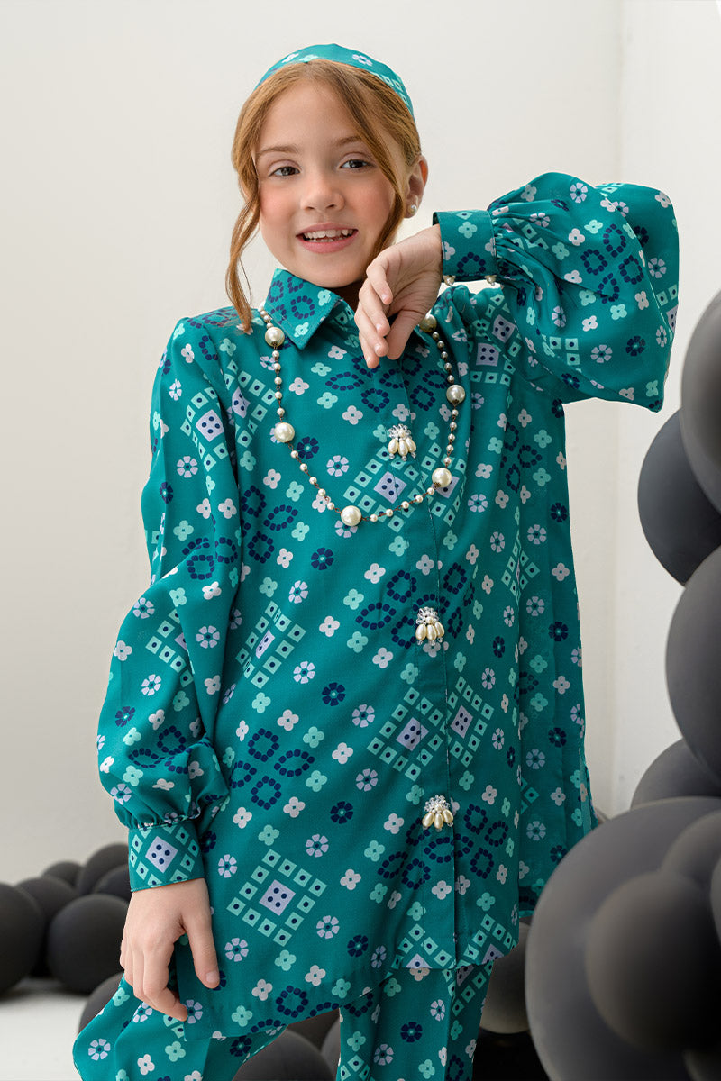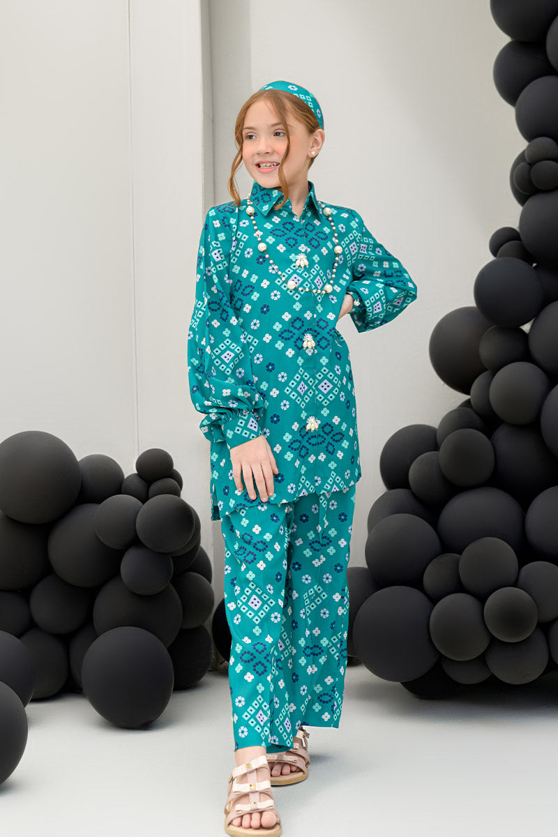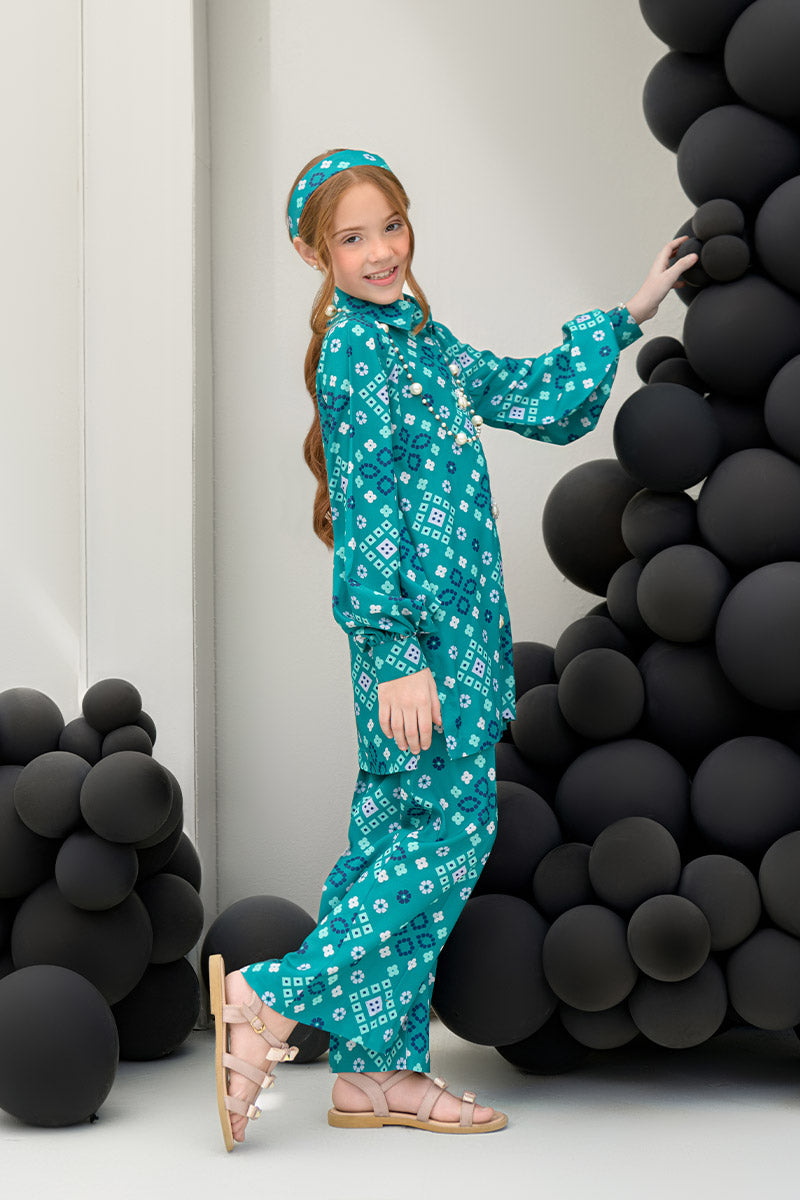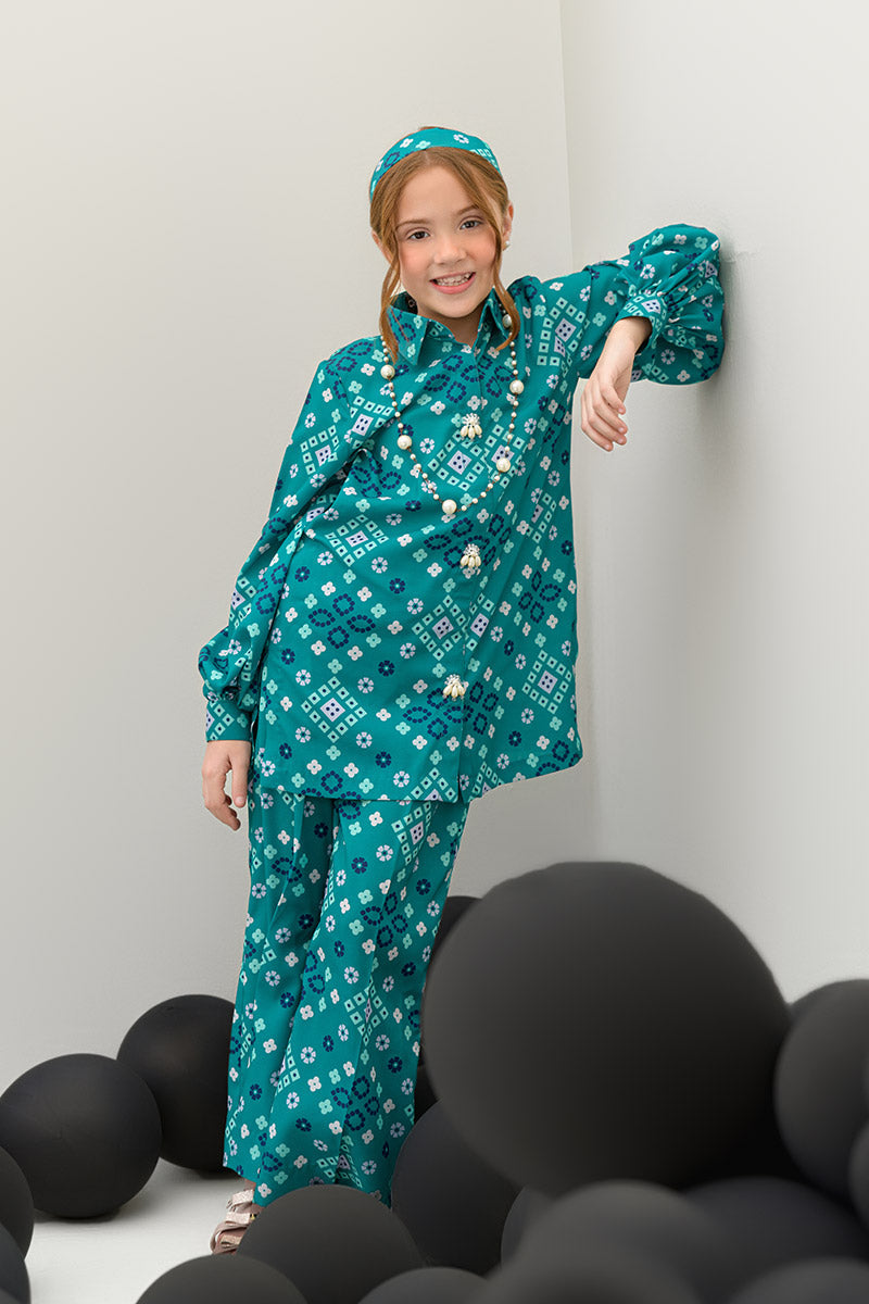 Introducing the Pine Whisper co-ord set, an embodiment of nature’s tranquility. This elegant ensemble features a short buttoned shirt in a rich dark green hue, enhanced by delicate pearl details at the front for a subtle touch of sophistication. Paired with culotte pants, the set offers a modern, relaxed silhouette that is both chic and comfortable. Crafted from soft crepe fabric, the Pine Whisper set is perfect for casual outings, office wear, or weekend gatherings, providing effortless style with an air of refinement. (Kids' lengths will be according to the size chart.)