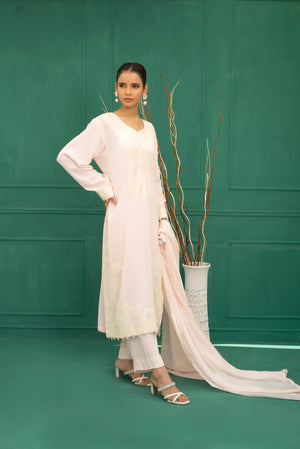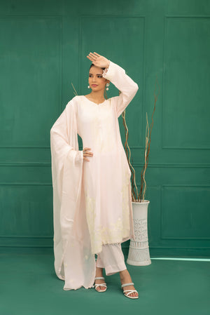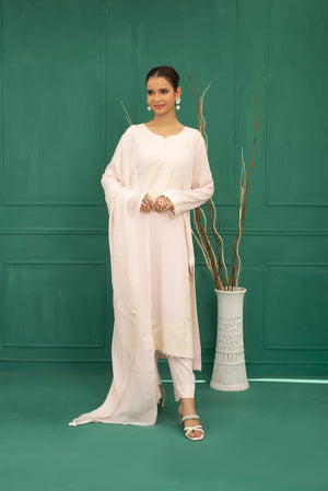 Breezy and lightweight, Pink Petals features heavy AAR work embroidery on the detailed neckline, sleeves, chaak and damanpaired with embroidered silk dupatta make it ideal for brunches or casual get-togethers, a must-have in your wardrobe.