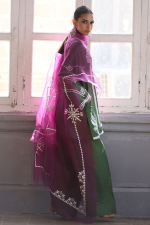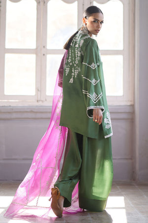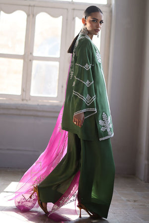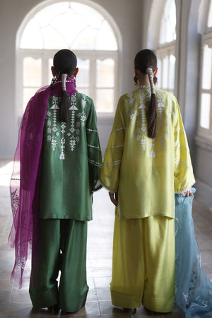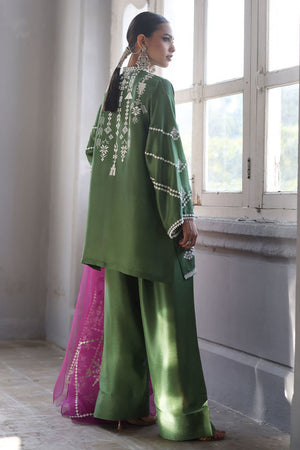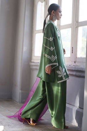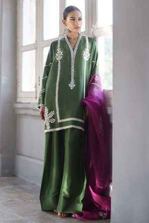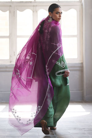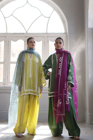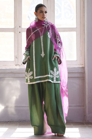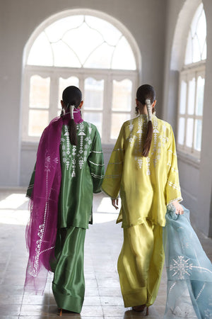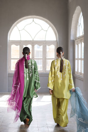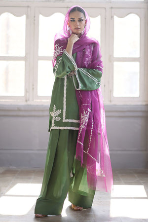 This stunning Short Kurta set combines elegance and comfort with its luxurious Pure Shisha Silk fabric. The shirt is beautifully enhanced with intricate Embroidery and Applique Work, creating a rich, textured look. The sleeves and back are adorned with delicate Screen Print, adding a modern touch to the traditional design. Paired with the shirt is a Pure Shisha Silk Shalwar, offering a sleek and stylish fit. Completing the ensemble is a Pure Organza Dupatta with an all-over Screen Print, bringing an ethereal and graceful element to the outfit. This exquisite set is perfect for formal or festive occasions, offering a seamless blend of tradition and contemporary charm.