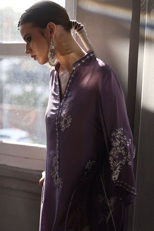 This stunning ensemble is a perfect blend of elegance and contemporary style. The shirt is crafted from luxurious pure Shisha silk, featuring a loose-cut design for a relaxed, flattering fit. Its front and sleeves are beautifully adorned with intricate screen print and handwork, enhanced with delicate 3D flowers and pearls, adding a sophisticated touch. The matching culottes, made from soft pure cotton silk, offer both comfort and style, ensuring a graceful silhouette. The pure organza dupatta is a showstopper with its all-over screen print, paired with handmade tassels hanging at the edges, further elevating the overall look. Ideal for festive occasions or special events, this ensemble exudes timeless charm with a modern twist.
