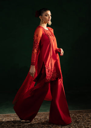 This stunning outfit features a heavily embroidered bodice with delicate sequins work & pleated sides for stunning style paired with intricately embroidered sleeves for an elegant touch, while fully embroidered matching dupatta with fine detailing completes the look.