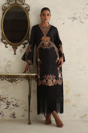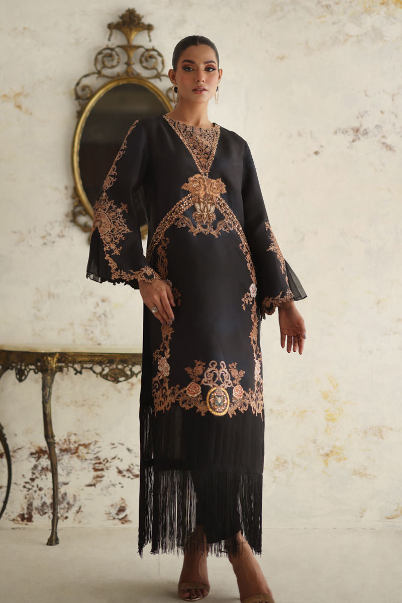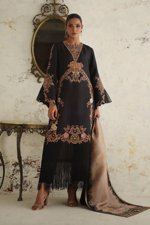 Embrace sophistication with this timeless garment adorned with subtle details that exude elegance and grace. Featuring delicate handwork and tilla accents on the front and sleeves, this dress is crafted with meticulous precision. Its sleek silhouette effortlessly enhances the wearer's figure, offering a refined and flattering look that epitomizes understated beauty. Comes with the pant.Can be paired with stole further elevates the look of the attire.